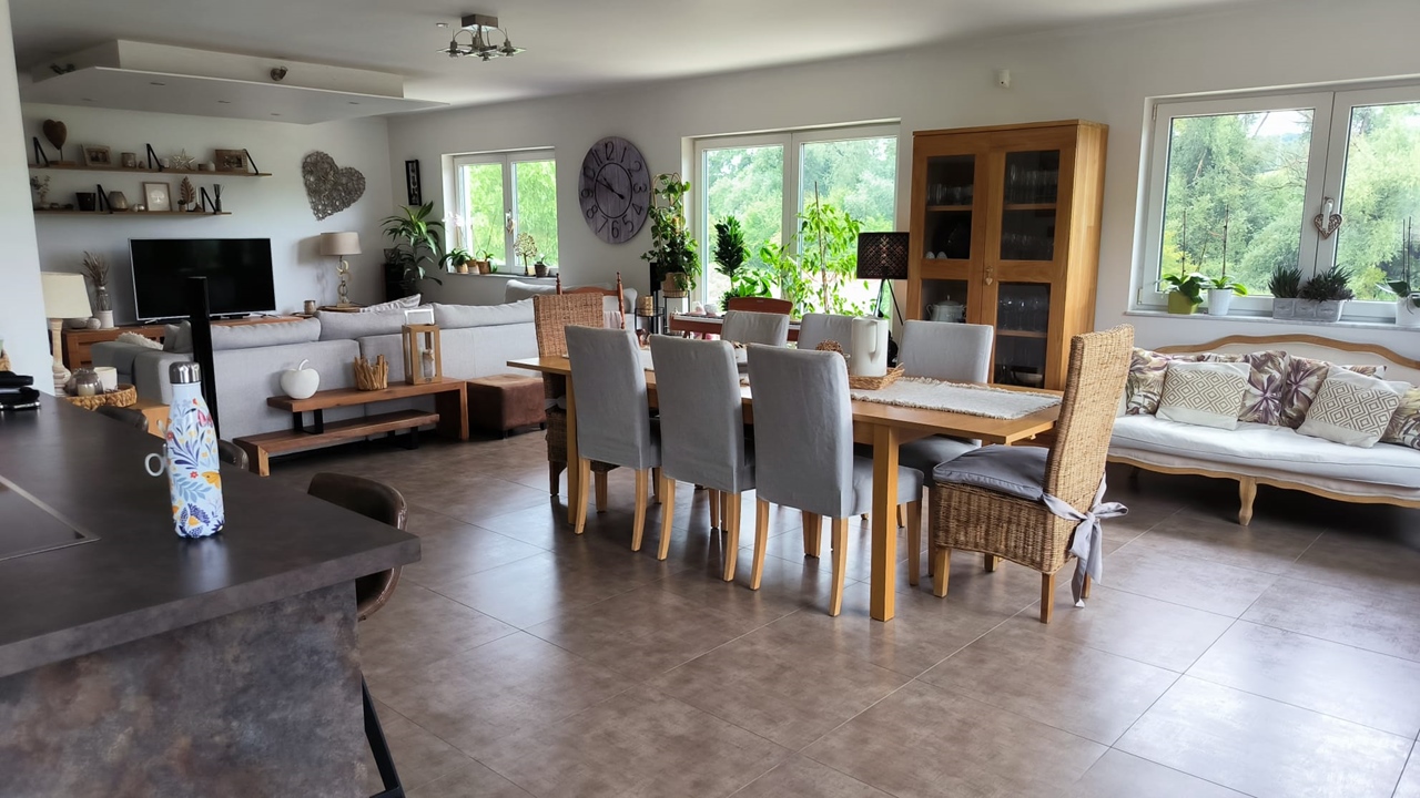 - een zeer grote, lichte woonkamer met open keuken en wasruimte