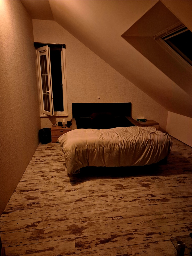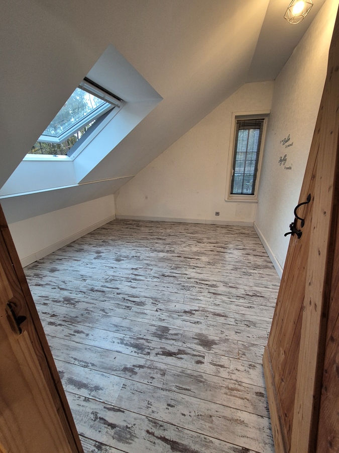 Kamer met dakraam en zijraam met mogelijkheid voor verduistering.