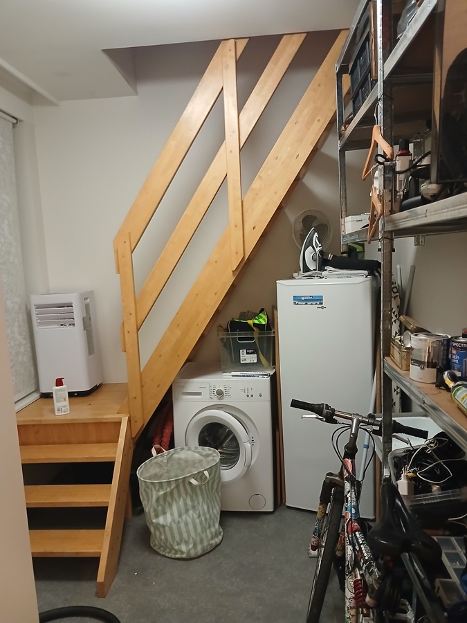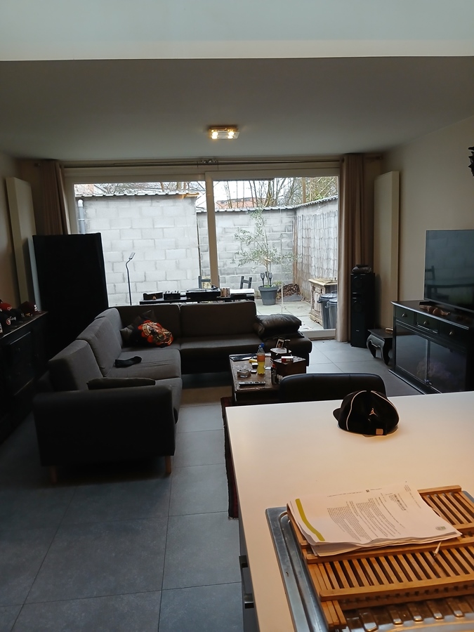 De woning is volledig gerenoveerd bestaande uit 3 verdiepingen, gelijkvloers bevat een ruimte met wasmachine diepvries en bergruimte, daarachter bevindt zich de ruime living met uitgeruste keuken. De schuifdeur achteraan leidt naar het terras met berghok.