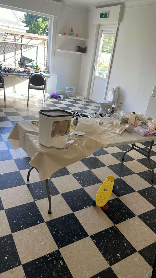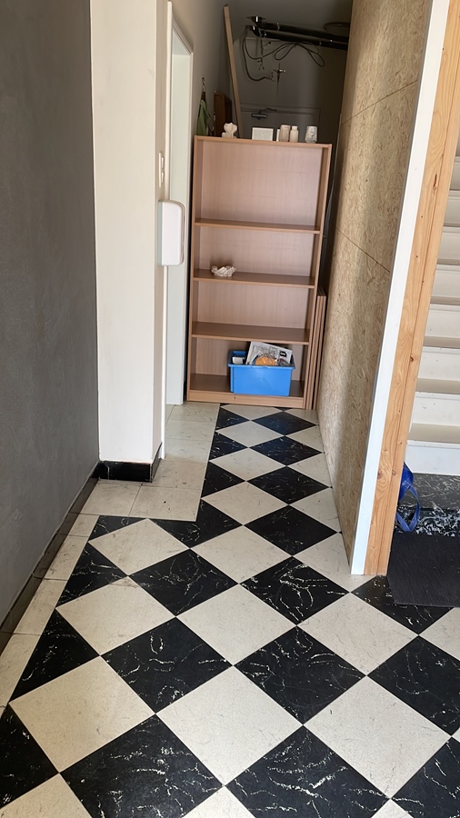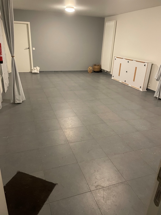 Beneden hebben we 2 polyvalente ruimten die kunnen gebruikt worden voor workshops. 1 ruimte is nu deels bureau.