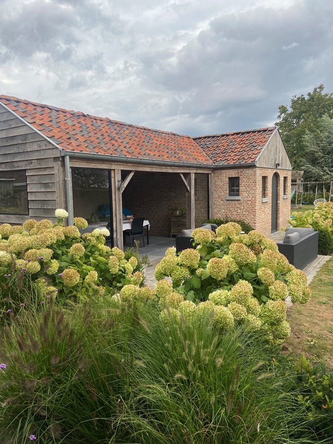 Heeft een gezellige tuin met overkapping en tuinberging voor fietsen.