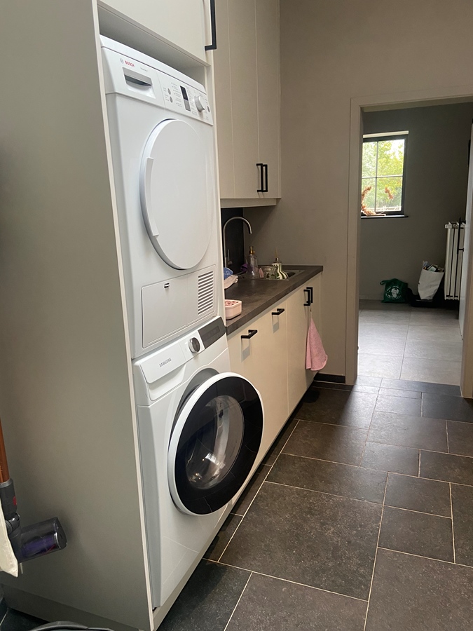 De keuken, berging met wasmachine, droogkast is gemeenschappelijk.